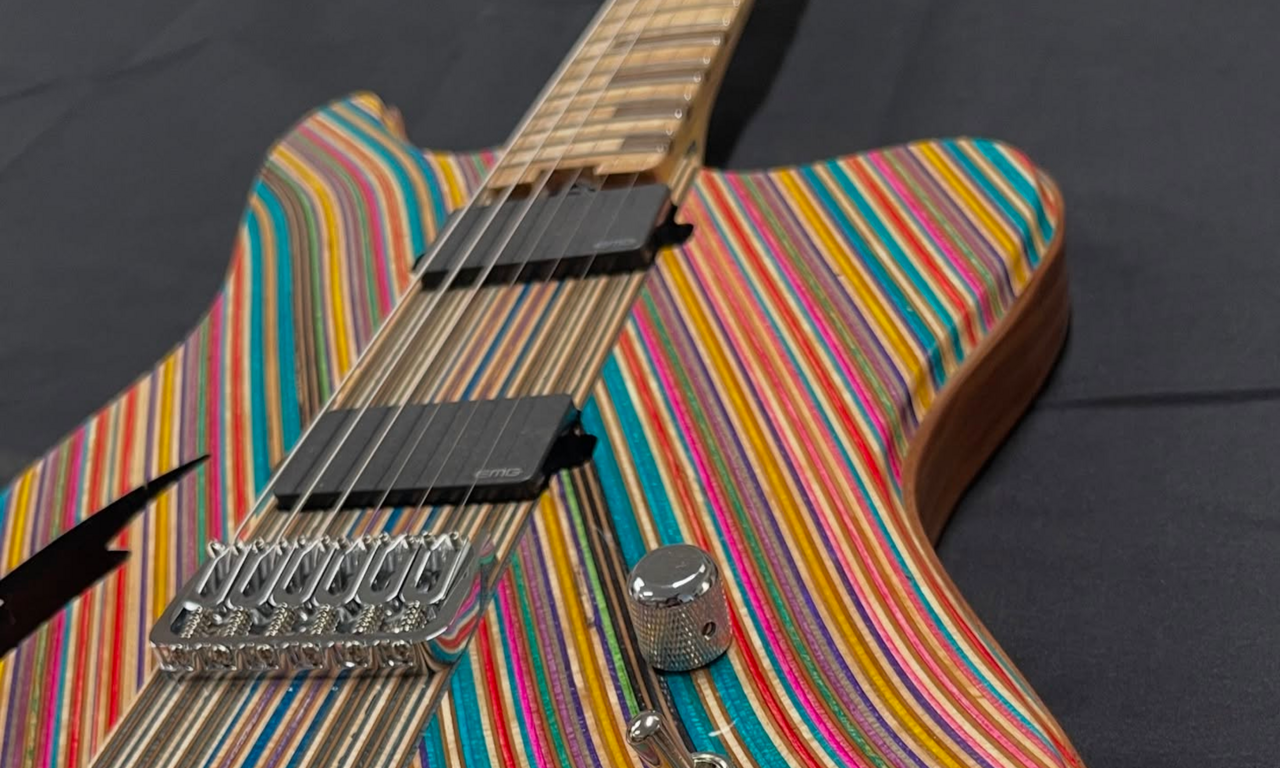 Ces planches de skate, avec leurs couleurs, leurs motifs et leur texture usée, apportent une vraie identité à chaque guitare. Chaque pièce est unique.